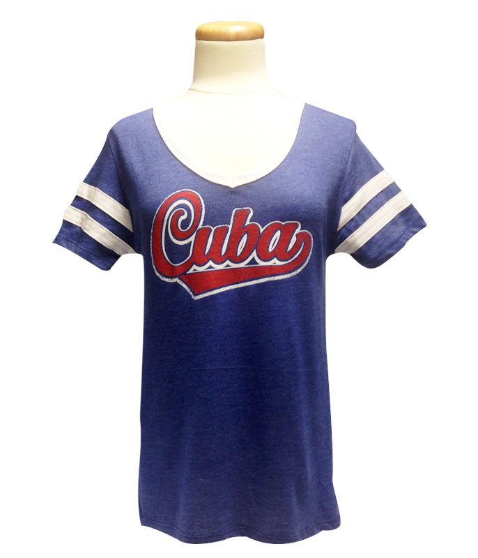 Ladies Cuba Varsity Baseball Tee-XX-Large