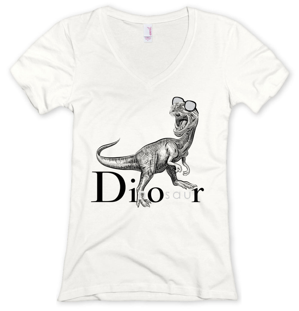 Ladies Dior Dinosaur Sheer V-Neck Tee