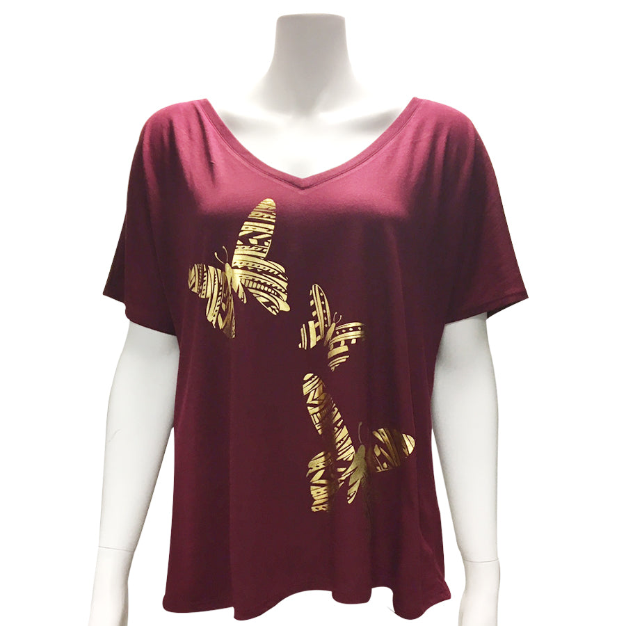 Ladies V-Neck Foil Butterfly T-Shirt