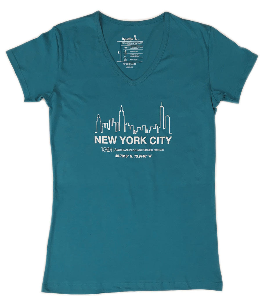 Ladies Teal Blue V-Neck NYC T-Shirt