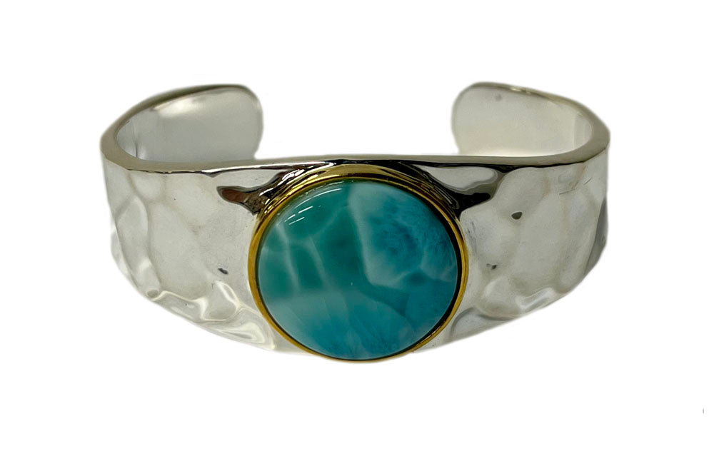 Larimar Gemstone and Hammered Silver Cuff Bracelet