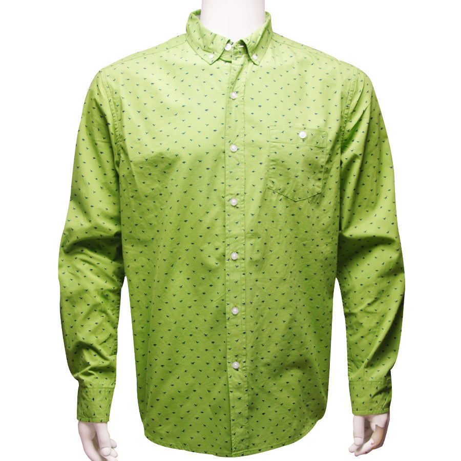 Men's Green LS Dinosaur Print Shirt