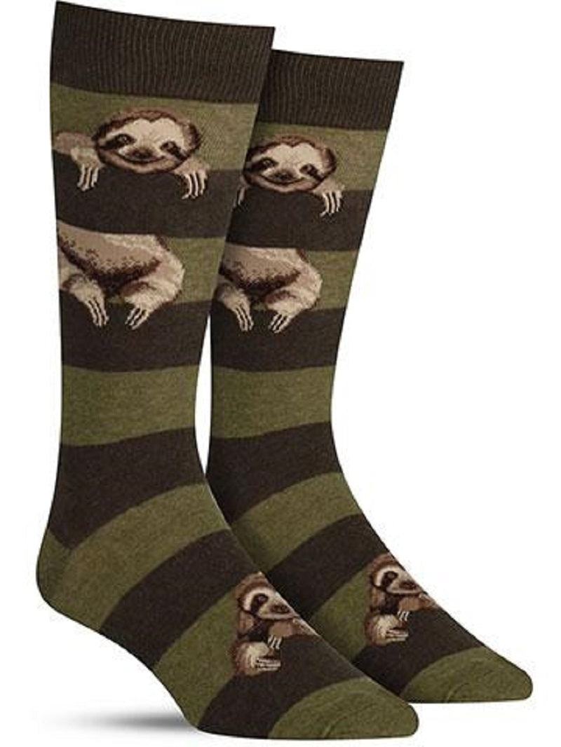 Men's Green Striped Sloth Crew Socks
