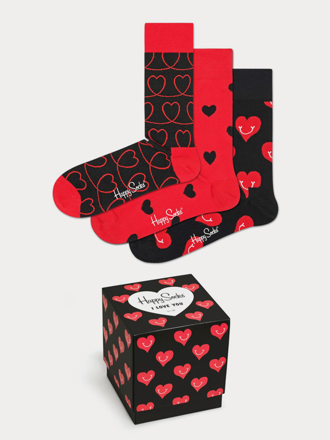 Men's Set of 3 Boxed Heart Design Happy Socks