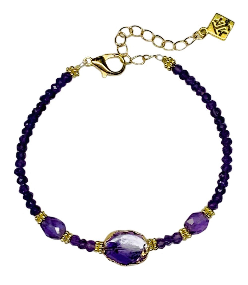 Natural Sliced and Faceted Amethyst Bead Bracelet