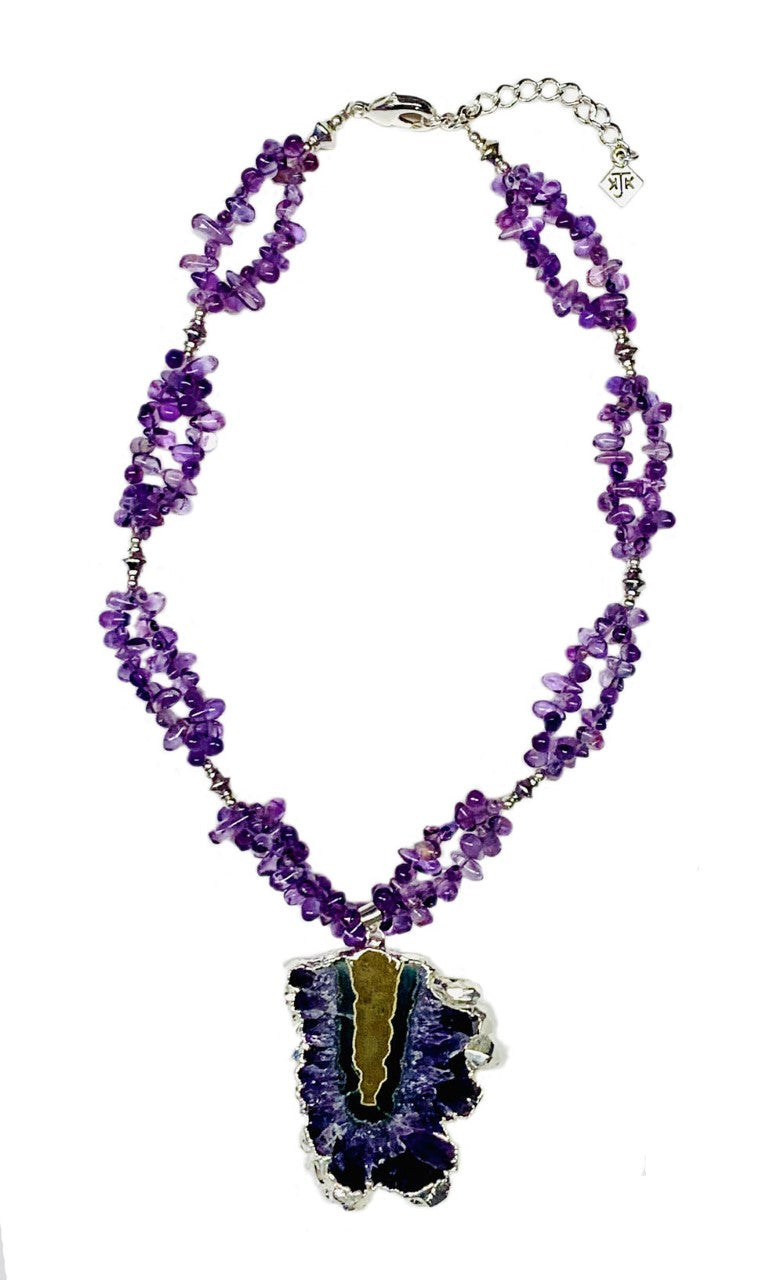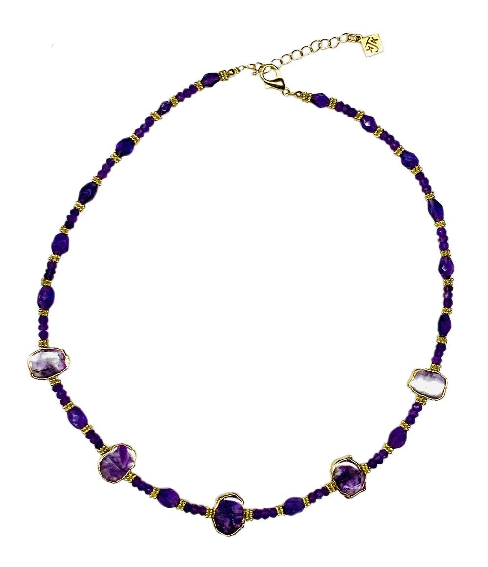 Natural Sliced and Faceted Amethyst Bead Necklace