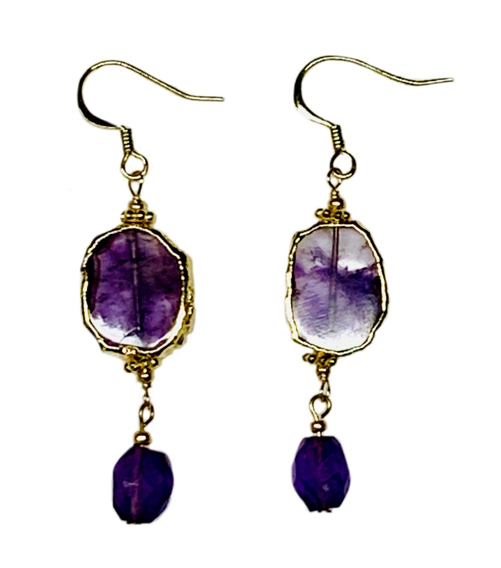 Natural Sliced and Faceted Amethyst Bead Earrings