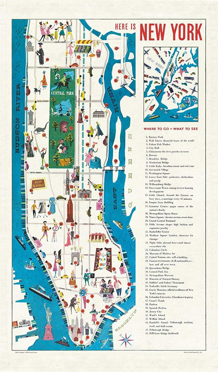 Vintage New York Map Tea Towel