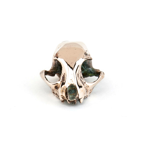 Yellow Bronze Bobcat Skull Necklace & Stand