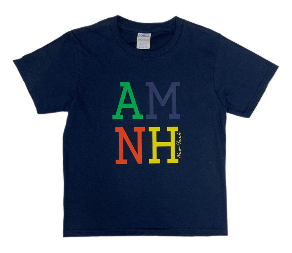 Youth Navy T-Shirt - AMNH Color Block Letters