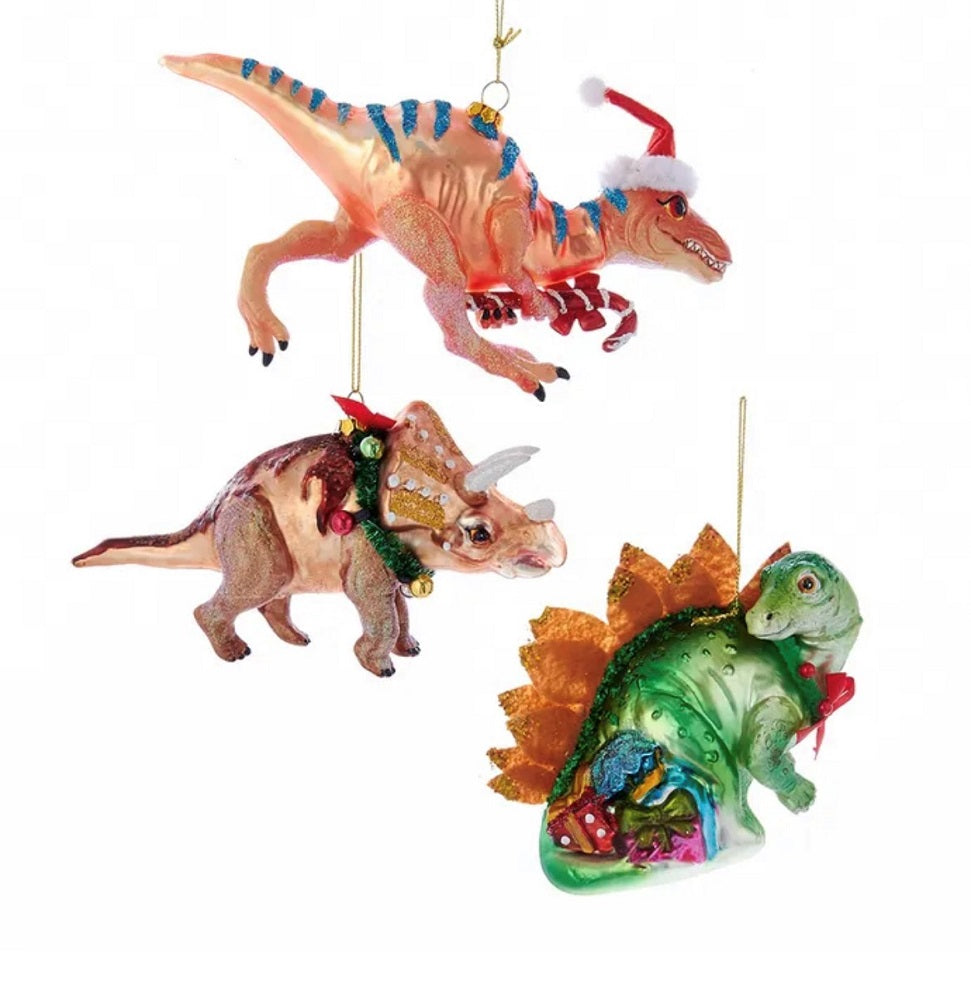 Assorted Glass Dinosaur Holiday Ornaments