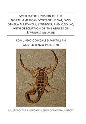 B405 (2016) Systematic Revision of the North American Syntropine Vaejovid Scorpion Genera Maaykuyak, Syntropis, and Vizcaino, with Description of the Adults of Syntropis williamsi.