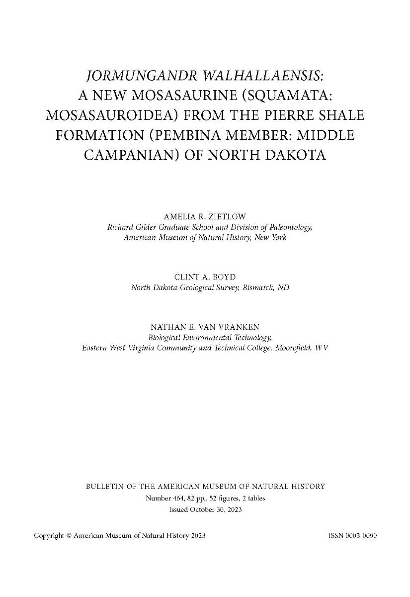 B464 (2023) Jormungandr walhallaensis : A New Mosasaurine from the Pierre Shale Formation