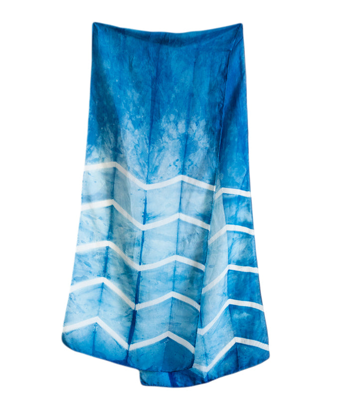 Beach Chevron Natural Indigo Shibori Dyed Silk Scarf