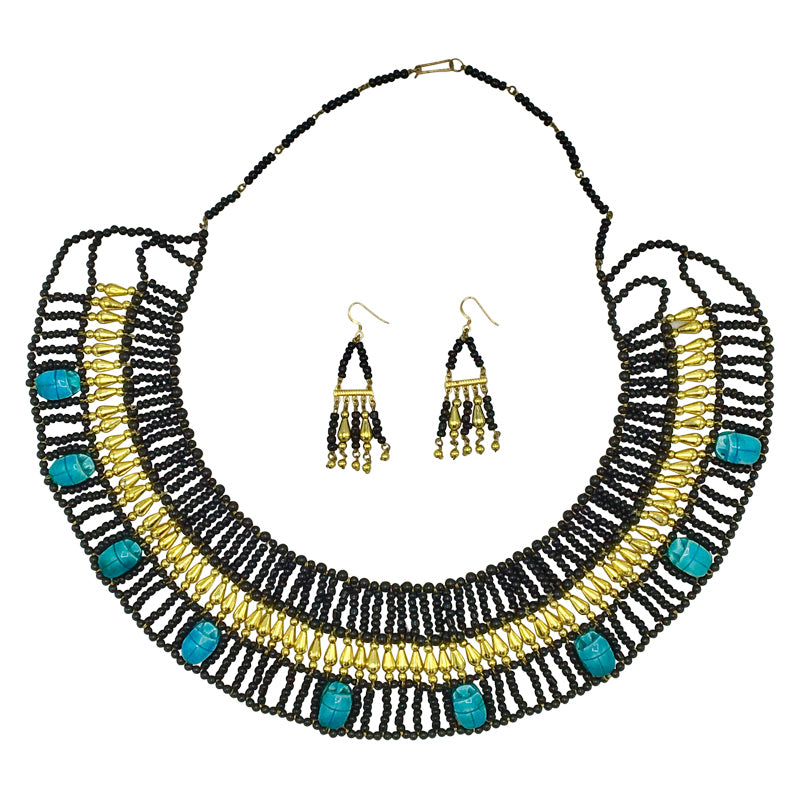 Black Egyptian Mummy Beads Collar & Earrings Set
