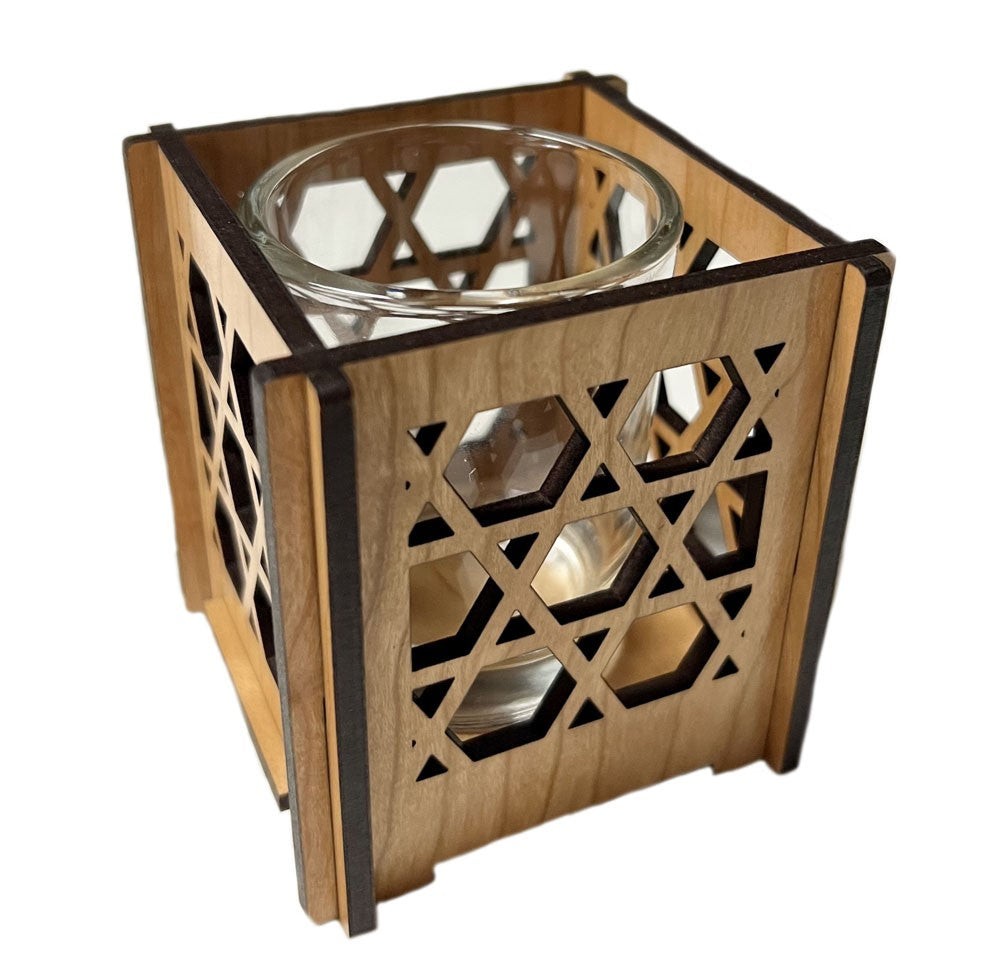 Cherry Veneer Hebrew Star Votive Candle Holder