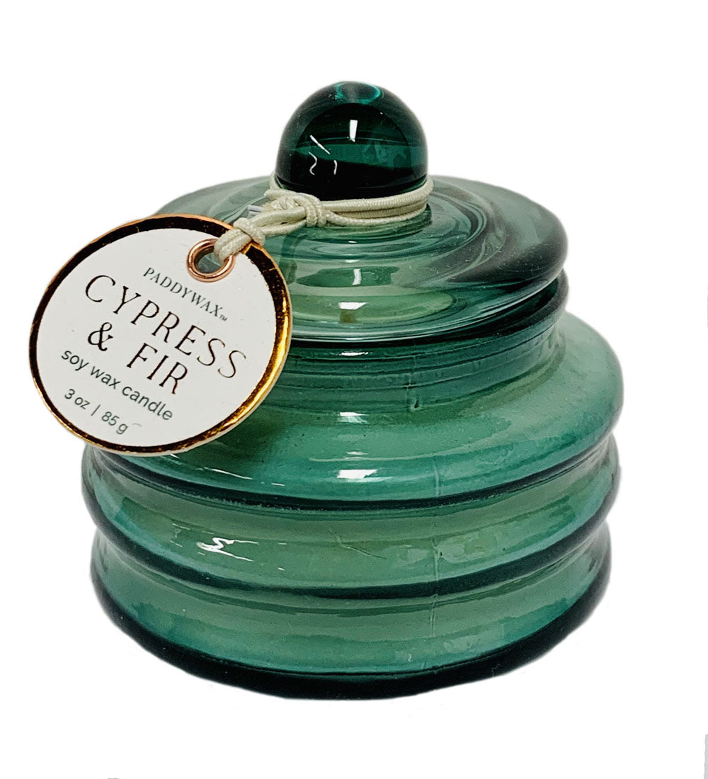 Cypress and Fir Candle in Green Hand-Blown Glass Pot