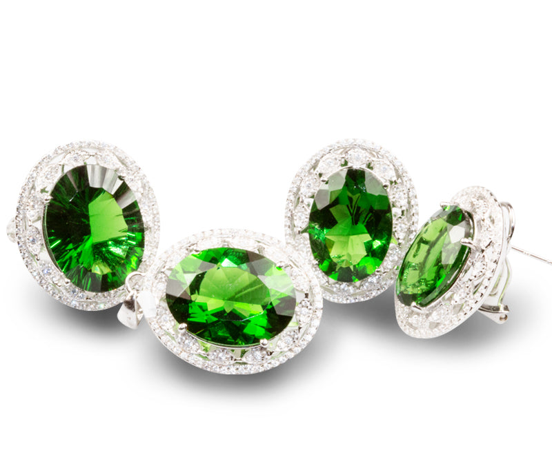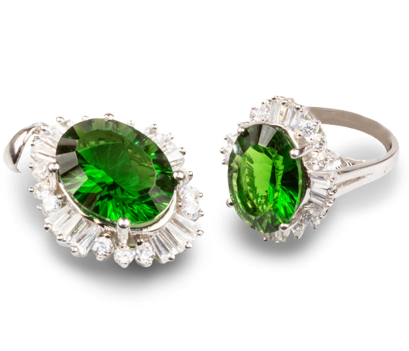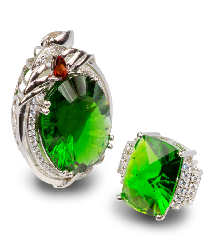 Green Helenite Oval Pendant, Earrings, and Ring Set