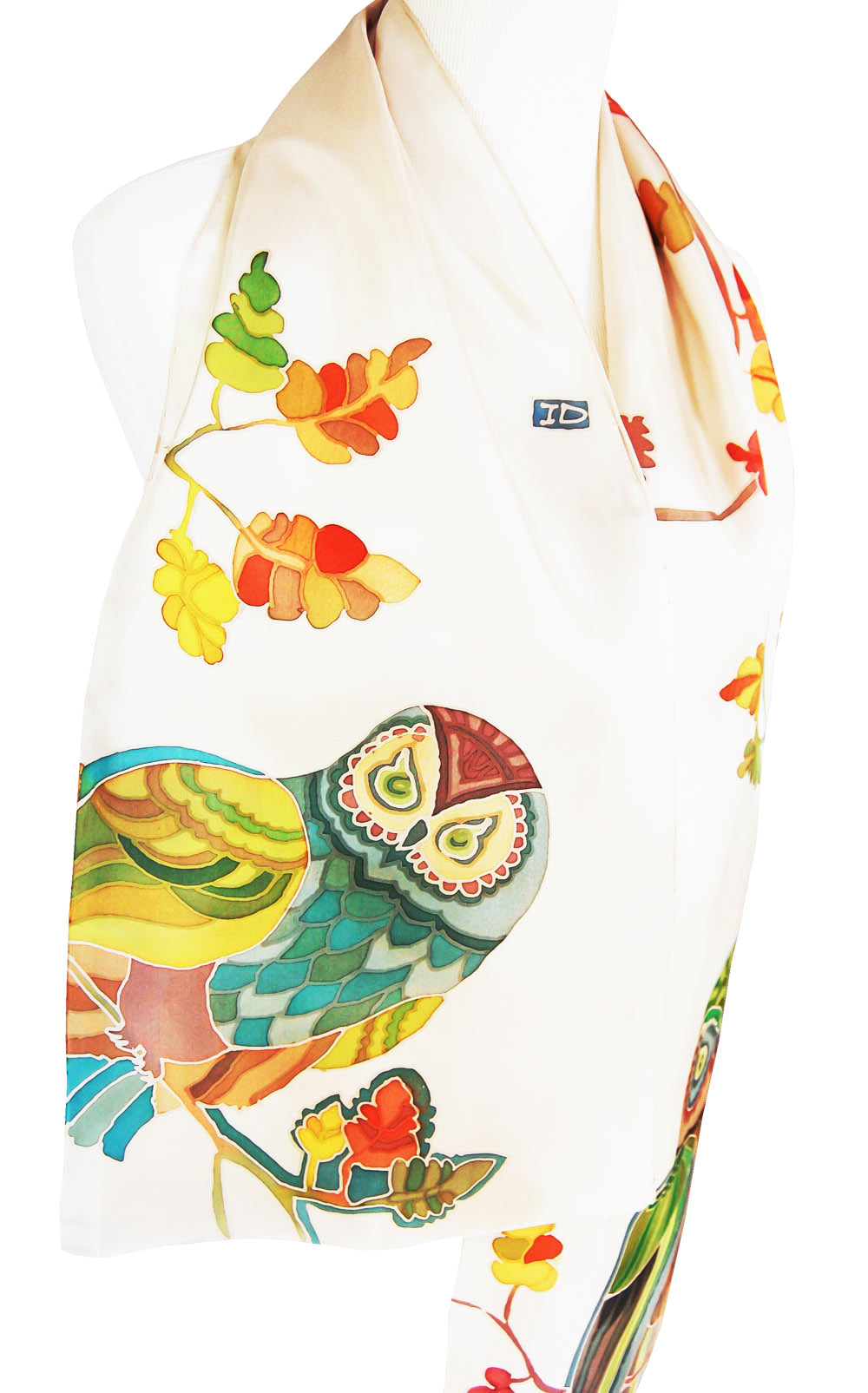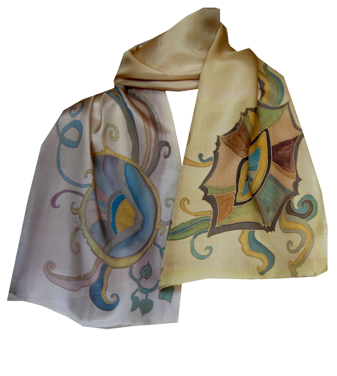 Hand Painted Silk Scarf Pearl Beige Modern Flowers