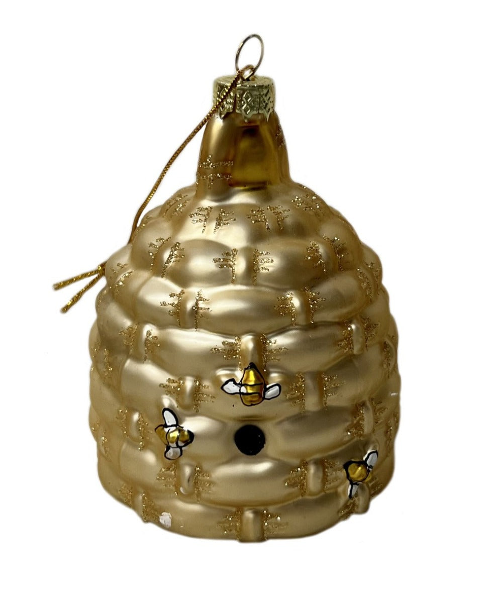Handpainted Glass Beehive Ornament