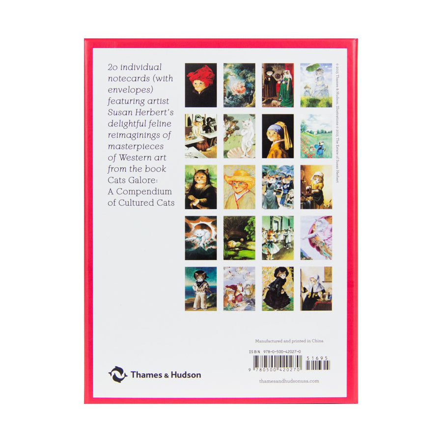 Susan Herbert's playful versions of famous works of art featuring felines have long delighted both cat and art lovers. Her charming illustrations of artful cats make for irresistible gifts in these note card box sets. Here is Botticelli's Birth of Venus, Vermeer's Girl with a Pearl Earring, Degas's The Dancing Class, Leonardo da Vinci's Mona Lisa, Fragonard's The Swing, and many more. Each unique card features one of Herbert's whimsical works of art and is sure to capture the fancy of cat devotees and art enthusiasts alike.