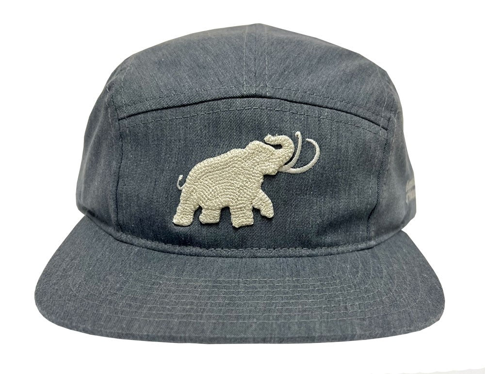 Gray cotton flat brim cap. Black adjustable back strap. Features a raised white embroidered woolly elephant and the Museum logo. One size fits most adults.