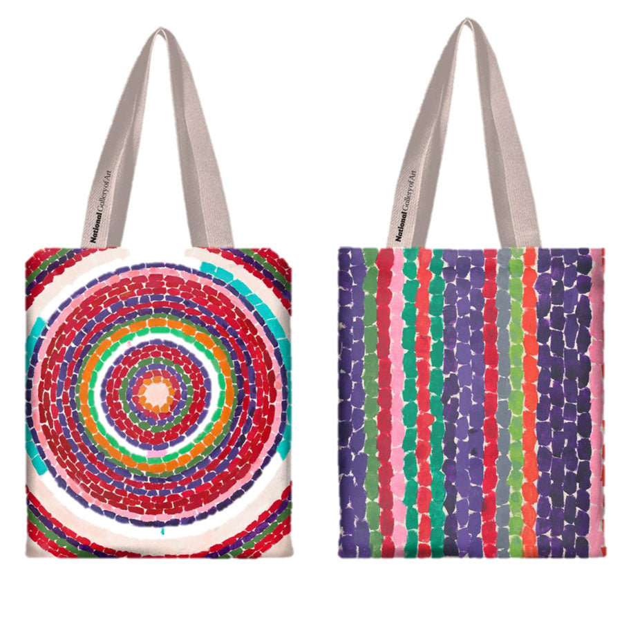 This fully lined magazine style tote bag will give you double the dose of Alma Thomas! It features a reproduction of Pansies in Washington on one side and Autumn Drama on the other side.
