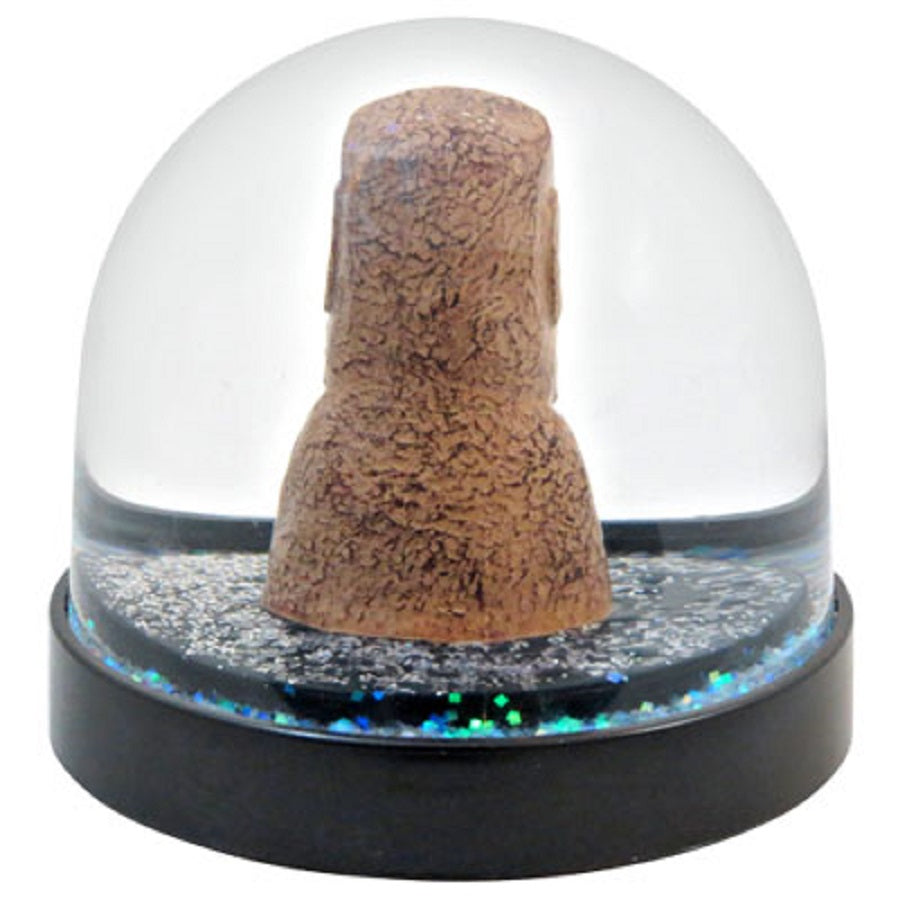 American Museum of Natural History Moai Statue Water Globe. Glitter "snow" inside. Plastic globe and base featuring Museum logo. Measures 3 x 3.5 inches.