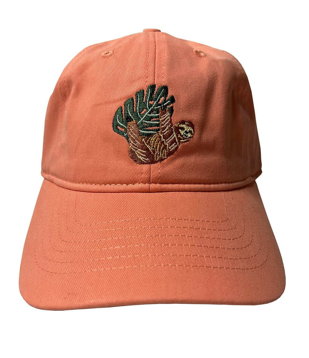Celebrate the opening of the new Gilder Center for Science, Education and Innovation with a coral rainforest cap embroidered with a sloth and the words "respect the rainforest" on the back. Cap is adult size with an adjustable bronze buckle strap. Hand wash for longer life.