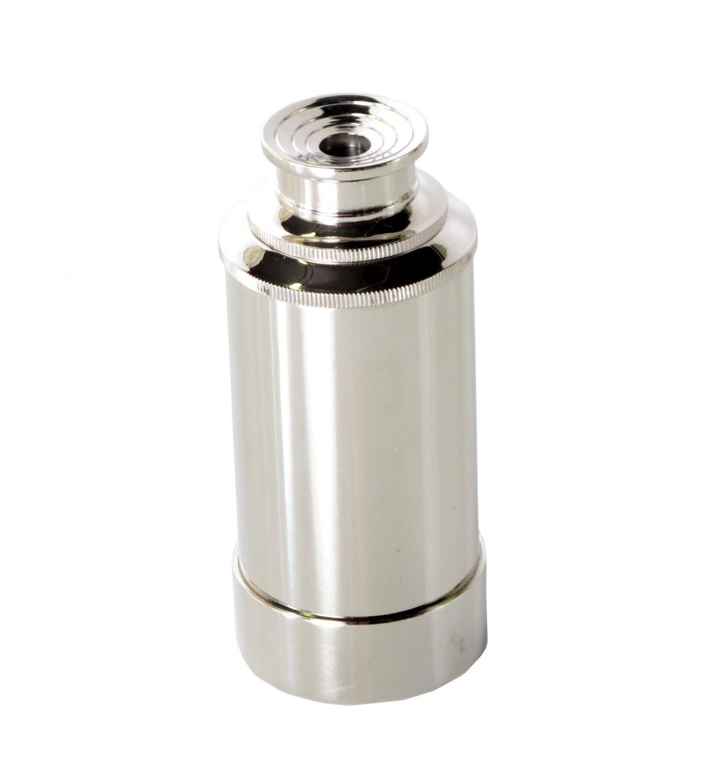 This telescope is collapsible, with a elegant nickel finish.