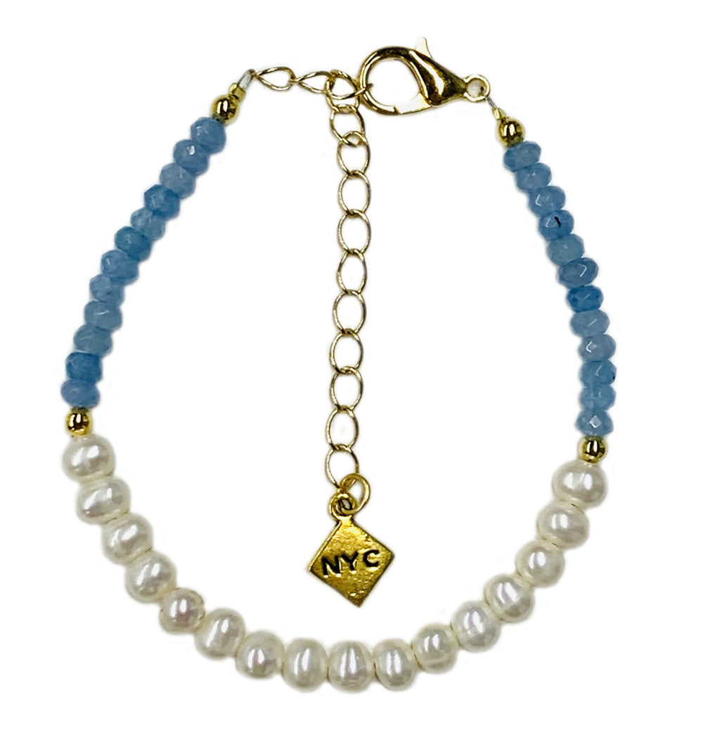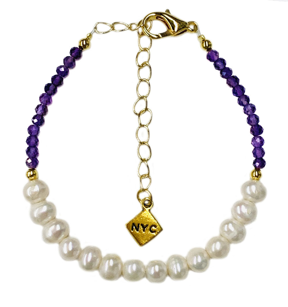 Made exclusively for the American Museum of Natural History, these beautiful cultured Pearl and gemstone bracelets feature 6mm pearls and faceted natural gemstones such as garnet and amethyst. Adjustable, one size fits most. Please choose from white, blue, green, Rose, purple or red gemstones. Price is for one bracelet.