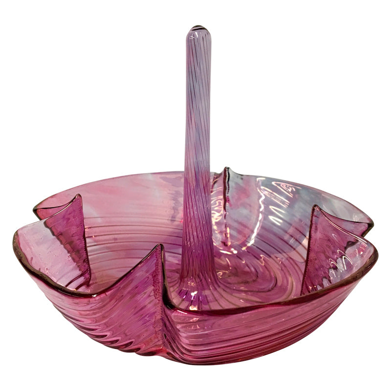 These beautiful handmade pieces of fine glass were mouth-blown by experienced Egyptian craftsmen. Each piece is individual and may vary slightly from the image shown. Choose from iridescent green or magenta.
