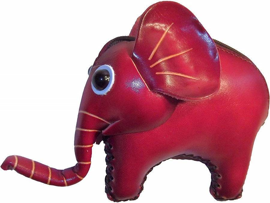 Keep your hand bag organize with this handcrafted small leather elephant coin purse. Zip closure. Clip-on leather strap is 5 inches long and fits over most wrists. Measures approximately 3 x 4 inches. Color: red