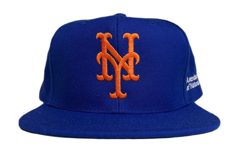 We are excited to feature this NY Mets Major League Baseball cap with an embroidered logo combined with our Museum logo on the side. It's a Museum exclusive made of royal blue acrylic and wool fabric with an adjustable rubber back strap and flat brim. NY Yankees hat also available.