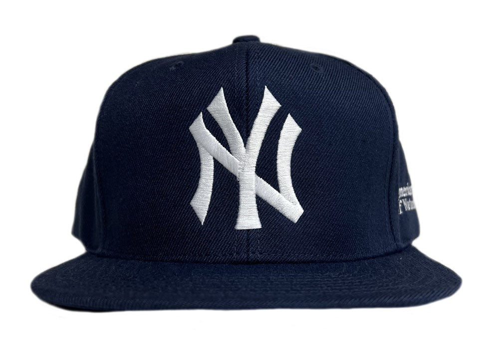 We are excited to feature this NY Yankees Major League Baseball cap with an embroidered logo combined with our Museum logo on the side. It's a Museum exclusive made of acrylic and wool with a rubber adjustable back strap and flat brim. NY Mets hat also available.