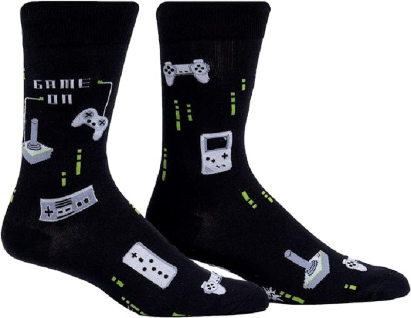 Ultra soft, high-quality, Glow In The Dark Game On crew socks. Approximately fits men's shoe size 7-13. Fun and funky socks, with reinforced 2-ply heel and toe. Certified by OEKO-TEX Standard 100, which means harmful chemicals are left out to keep your skin safe and happy. Stylish, comfortable, stretchy and fun!