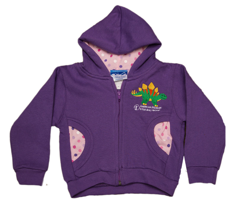Fleece dinosaur embroidery girl's hooded sweatshirt.