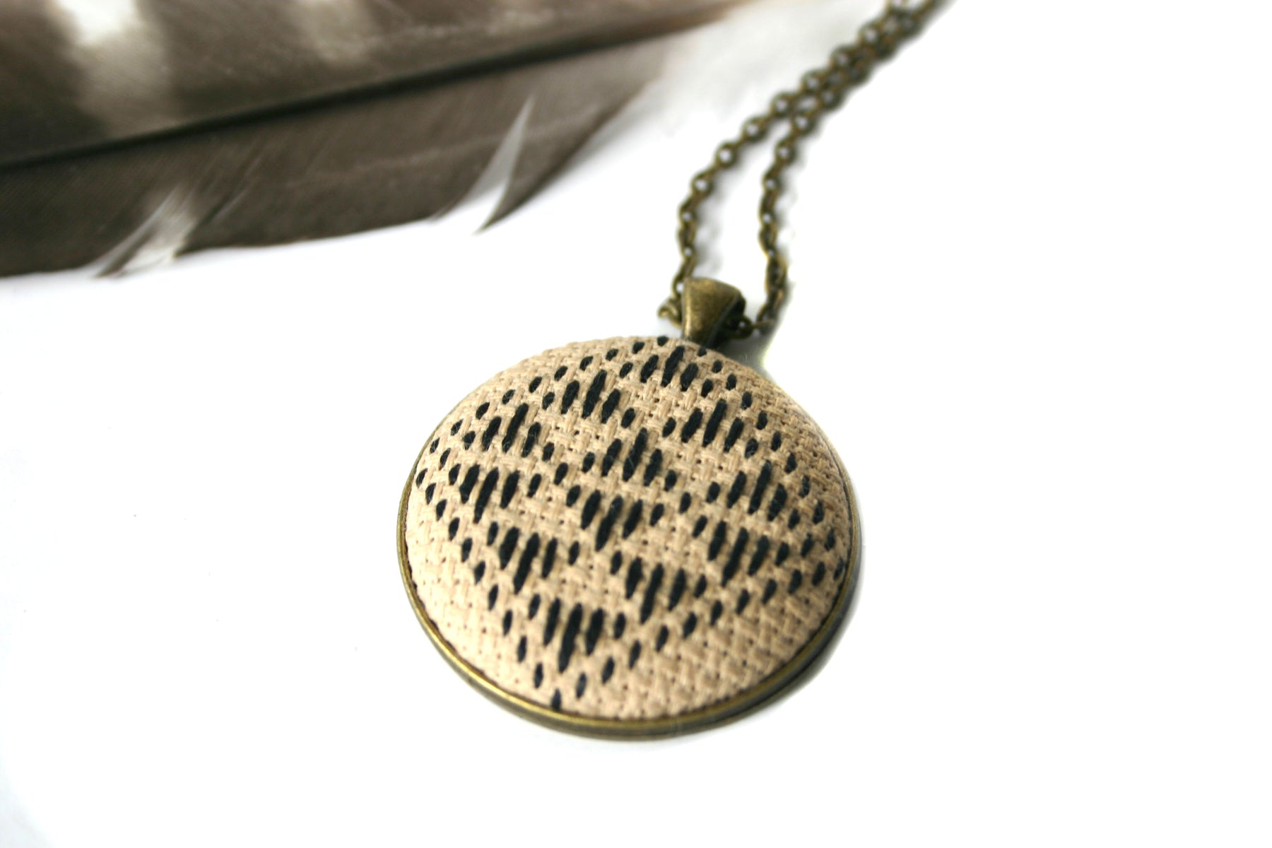 Metal + Cloth: Antique Brass settings and chain (lead & nickel free).