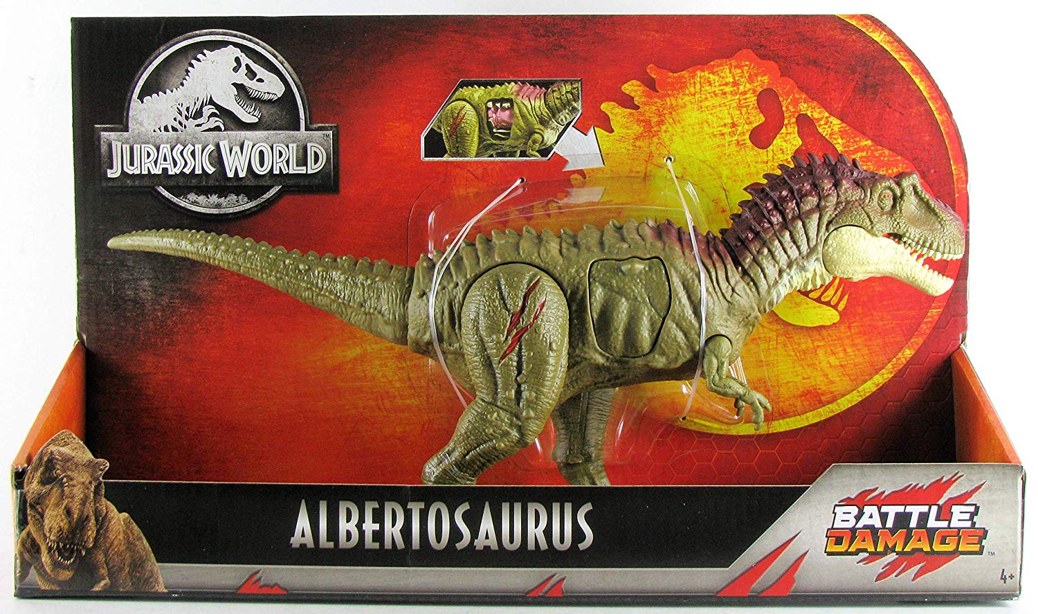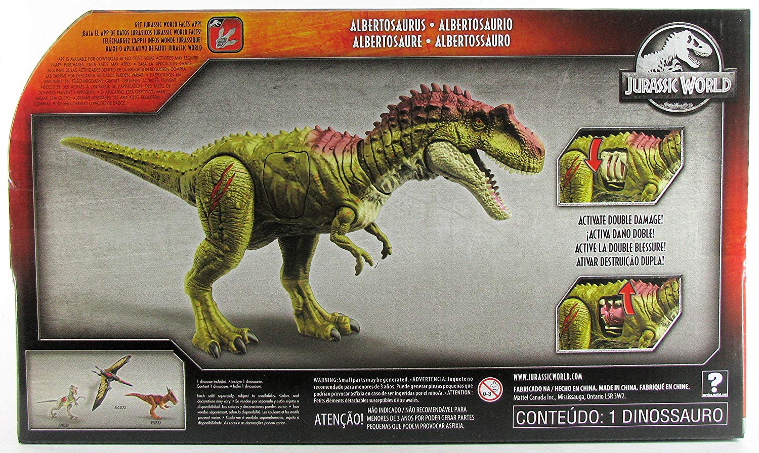 Jurassic World Dual Attack Albertosaurus action figure has a dual-button activation for fierce battle action iconic to each respective species! For example, push the back button and the tail strikes; press the front button and the head strikes! You can also press both buttons at the same time for dual tail and head-striking action! Measures 14 inches long. Ages 4 years and up.