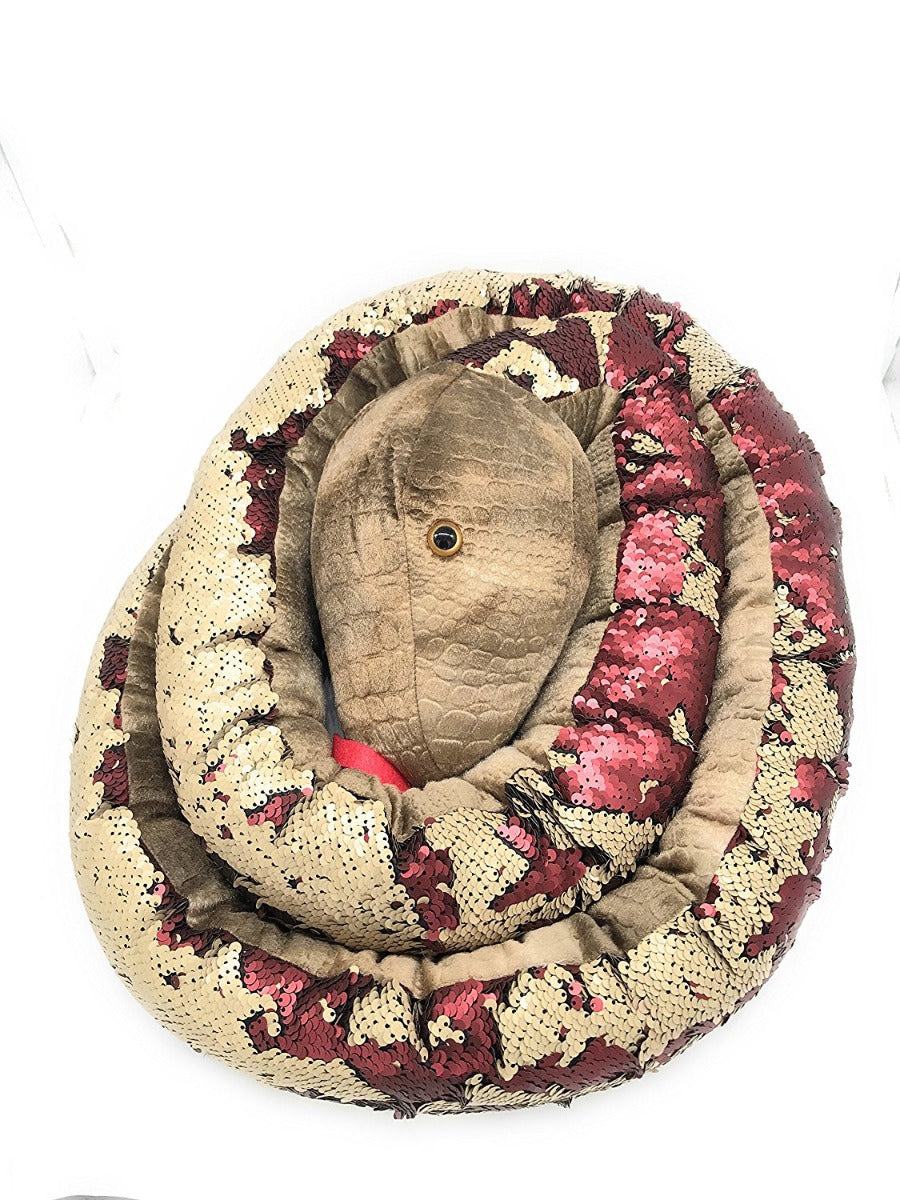 This large natural looking plush snake is covered in tan and burgundy sequins which can be brushed with your hand to create different patterns. So much fun for children ages 3 and up.