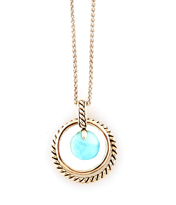Larimar is a hard stone with a color palette of blue and green, with no two stones alike. Each stone is handpicked and celebrates its beauty with settings designed to enhance and compliment its volcanic and oceanic traits.