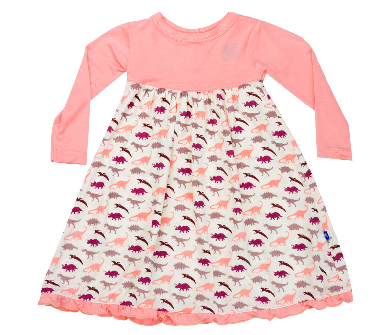 Kickee Pants' long sleeve dino swing dress is perfect for the little twirler in your life. Your little sweetie will love the fanciful swish when she twirls. The sweet and simple style is easy on and easy off.