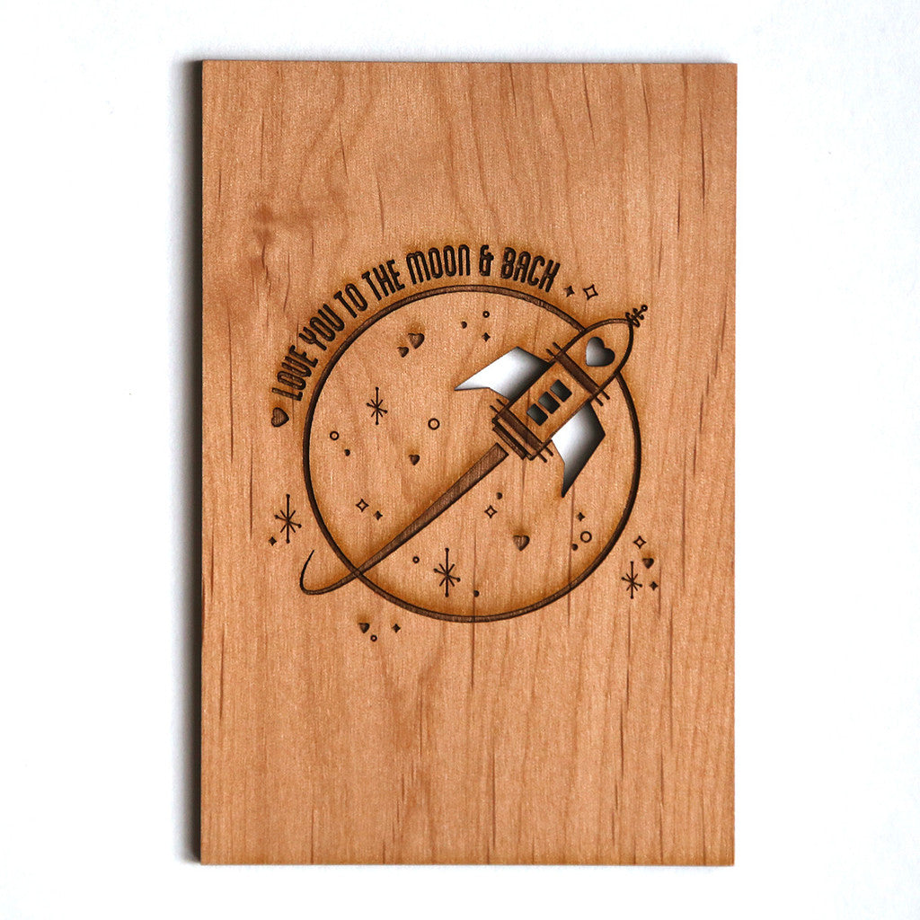 Love You to the Moon & Back by Cardtorial is made from sustainable wood.