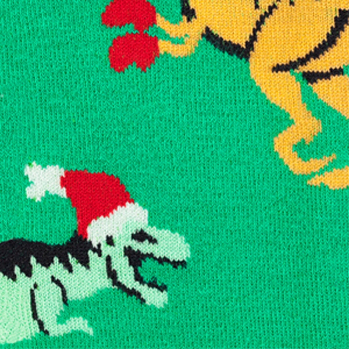 Make his holiday season more festive and fun with Santa Rex Crew Socks. Made of a cotton/poly/spandex blend. Fits men's shoe size 8 to 12.5. Wash with like colors.