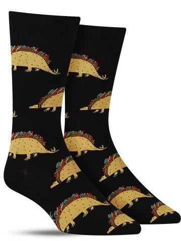 Tacos, the greatest food of all time, are now combined with stegosaurus, a mighty dinosaur, to create the ultimate sock. Tacosaurus: delicious and powerful.
