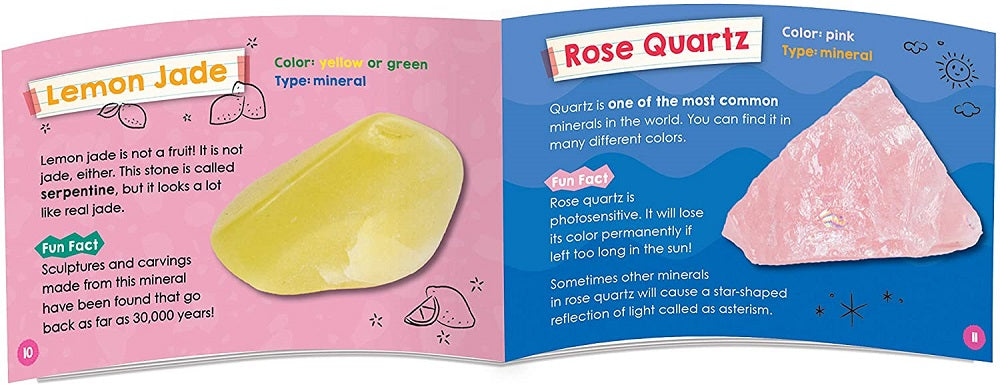 Junior gemologists will "dig" learning about rocks and minerals with this beginner's collection. The kit includes 8 polished rock samples, such as turquoise, amethyst, rose quartz, lemon jade, and more PLUS a surprise rock that they will unearth in the dig kit. The field guide introduces easy-to-follow STEM content, including fun facts and jokes. Then go exploring to find rocks from home that you can decorate with the included paint and googly eyes. Ages 4 to 6.