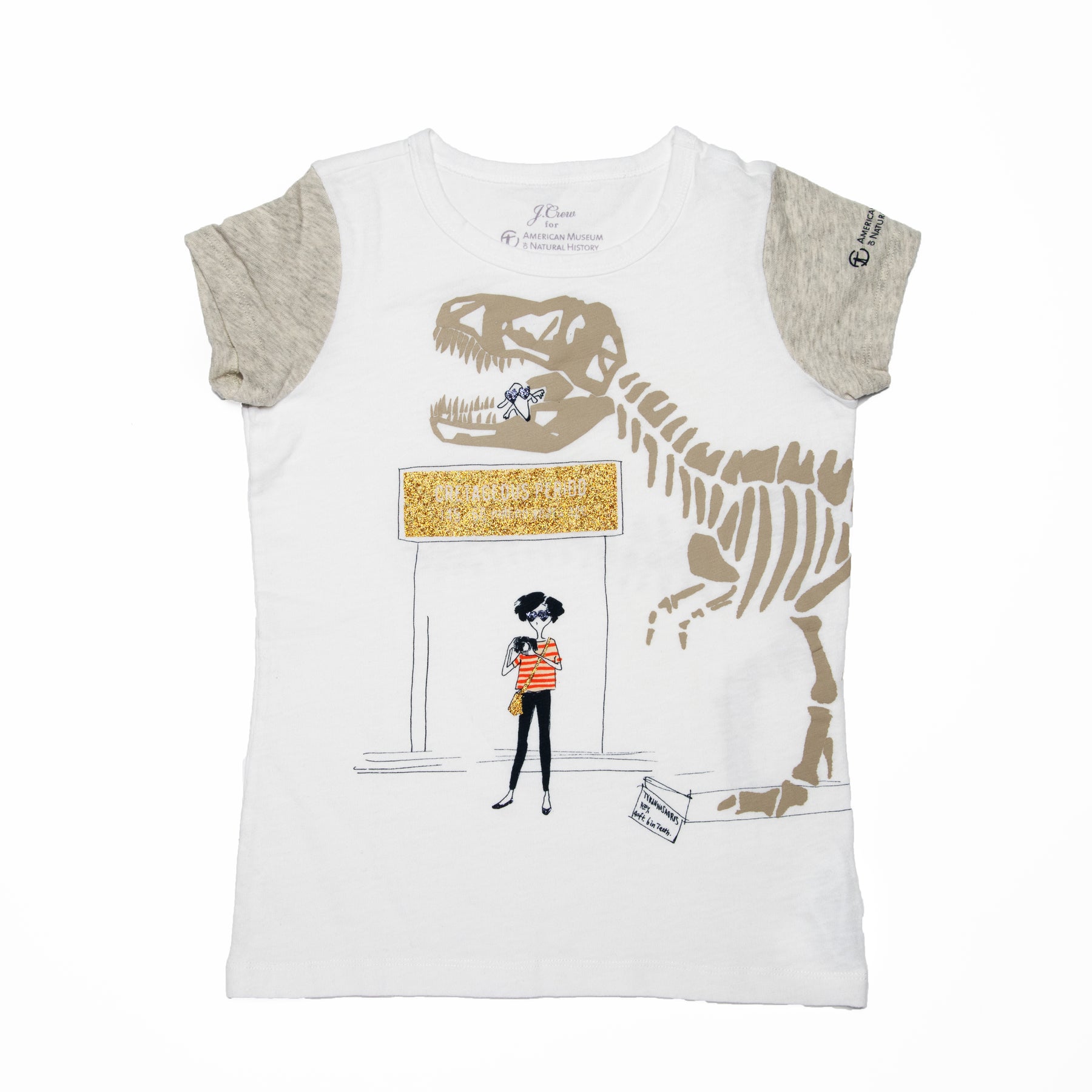 As one of J. Crew’s favorite places in New York City, AMNH inspired the J. Crew team to create a special collection of graphic tees. This one features the J. Crew characters Olive and her dog Izzie, checking out the Museum’s T. rex.