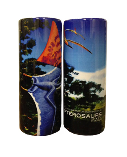This colorful 1.5 ounce shooter illustrates the pterosaur species: Pteranodon longiceps, from the Niobrara formation of North America, and is inspired by the Museum's Pterosaurs: Flight in the Age of Dinosaurs exhibition.