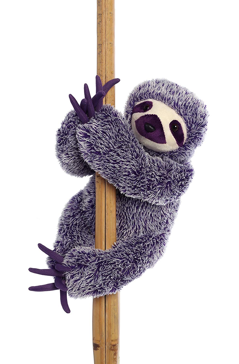 Super soft purple plush 3-toed Sloth features velcro paws so you can wrap it around yourself or whatever you wish and it will hold on for as long as you like. It measures approximately 18" long and features a mix of colorful fabrics and realistic features. Includes a special tag with species information. For children 3 months to 8 years.