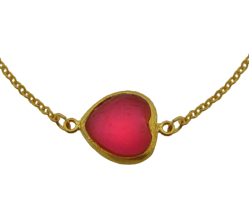 Red Heart Necklace by Michael Vincent Michaud is made of 24k gold over bronze with cast glass.
